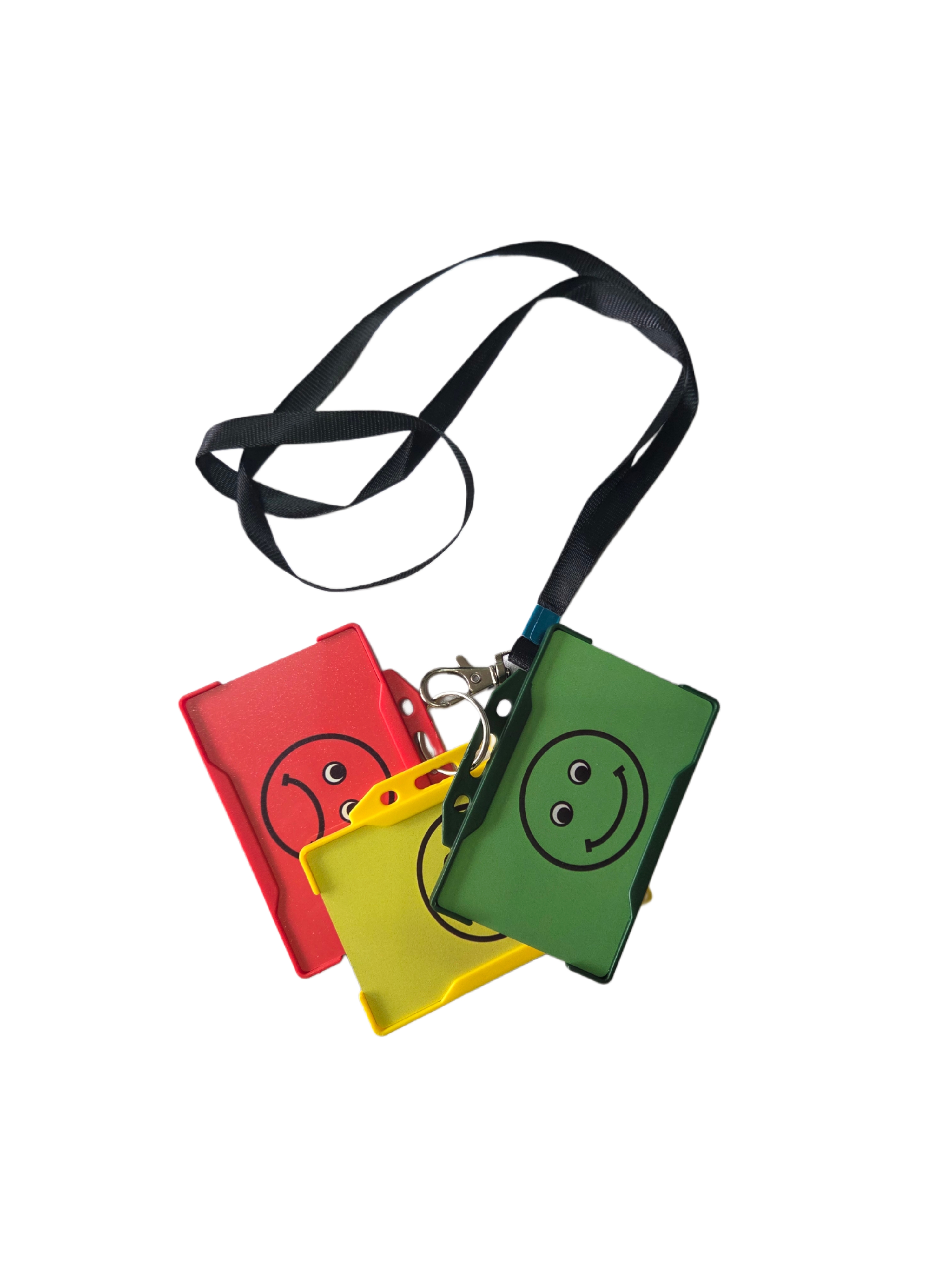 (Behavior Cards / Feelings cards / Emotion Cards) with matching card holders and a black lanyard.